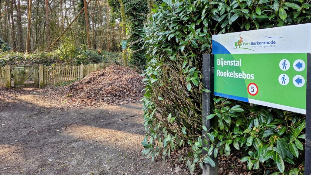 Linksaf vanuit het huisje loopt u binnen een paar stappen het Roekelse bos in – ideaal voor een ontspannende wandeling.